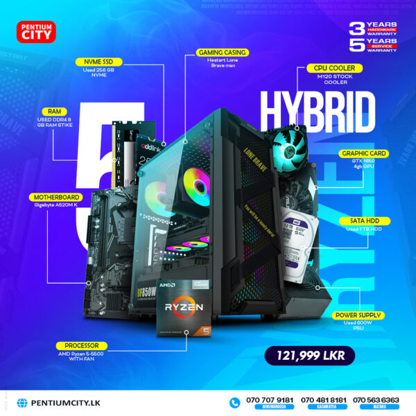 AMD Ryzen 5-5500 Processor | Gigabyte A520M K | USED 256GB NVME |USED 1TB HDD | USED DDR4 8GB RAM | USED 600W PSU | USED GTX 1650 4gb | M-120 Stock Cooler | Hestart Lone Brave man Case