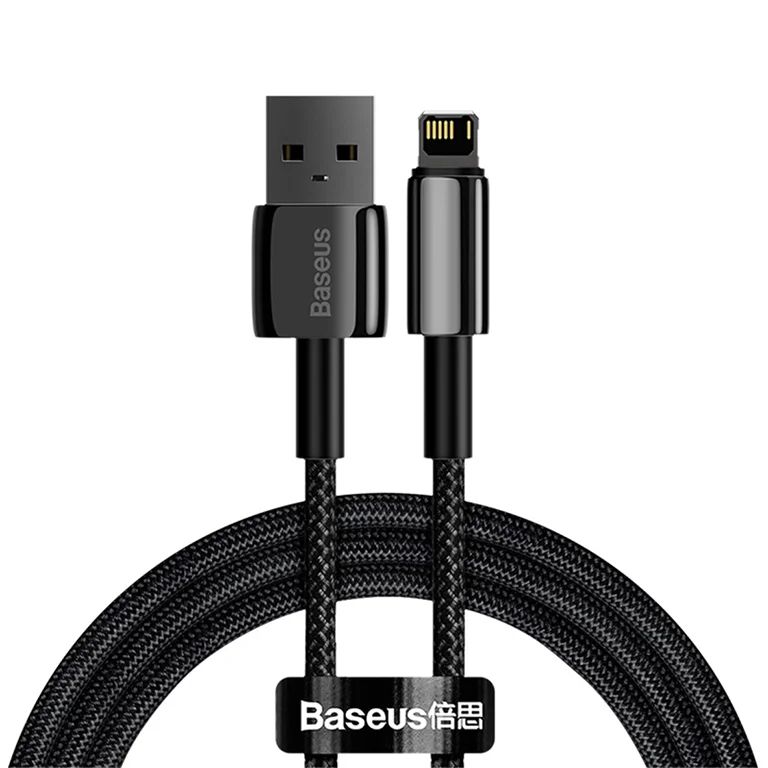 The Baseus Tungsten 2.4A USB to Lightning Cable is built for reliability and style. Featuring a premium tungsten-braided exterior, it resists wear and tear while maintaining flexibility. With a 2.4A current output, it ensures efficient charging and smooth data transmission for all Lightning-compatible devices. The reinforced connectors provide extra durability, making it perfect for everyday use at home, in the office, or on the go. Compact and sturdy, this cable combines strength with performance, delivering a premium charging experience for iPhone and iPad users.