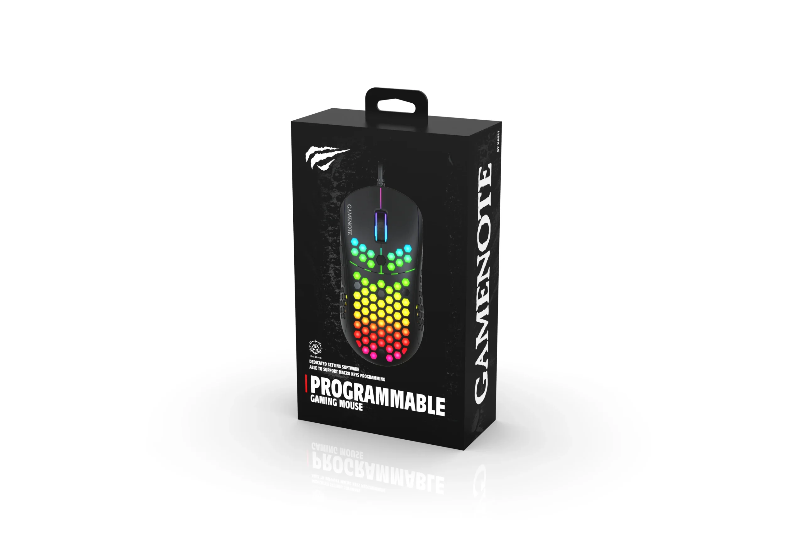 The mouse includes 7 programmable buttons and a lightweight design with removable front and rear covers â letting you choose between a honeycomb or glossy finish for comfort and airflow.