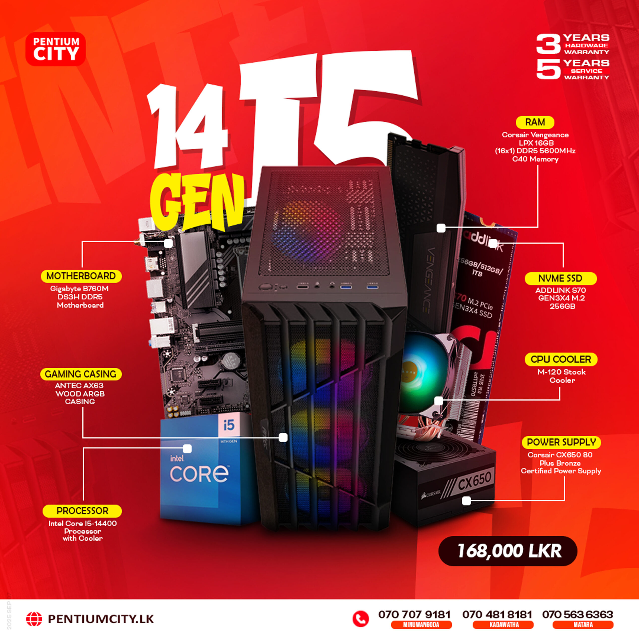 You're viewing: Intel Core I5-14400 Processor | Gigabyte B760M DS3H | 256GB NVME SSD | DDR5 16GB RAM | 650W 80 Plus Bronze PSU | M-120 Stock Cooler | ANTEC AX63 WOOD ARGB Case Original price was: Rs. 180,000.00.Current price is: Rs. 168,000.00.
