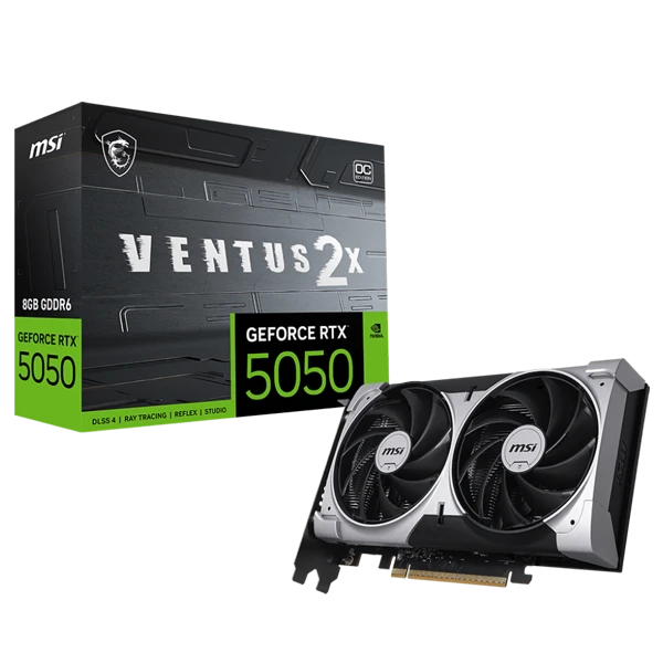 | Marketing Name GeForce RTX™ 5050 8G VENTUS 2X OC Model Name G5050-8V2C Graphics Processing Unit NVIDIA® GeForce RTX™ 5050 Interface PCI Express® Gen 5 x16 (uses x8) Core Clocks Extreme Performance: 2617 MHz (MSI Center) Boost: 2602 MHz CUDA® CORES 2560 Units Memory Speed 20 Gbps Memory 8GB GDDR6 Memory Bus 128-bit Output DisplayPort x 3 (v2.1b) HDMI™ x 1 (As specified in HDMI™ 2.1b: up to 4K 480Hz or 8K 120Hz with DSC, Gaming VRR, HDR) HDCP Support Y Power consumption 130 W Power connectors 8-pin x1 Recommended PSU 550 W Card Dimension (mm) 197 x 120 x 41 mm Weight (Card / Package) 491 g / 827 g DirectX Version Support 12 Ultimate OpenGL Version Support 4.6 Maximum Displays 4 G-SYNC® technology Y Digital Maximum Resolution 7680 x 4320 |